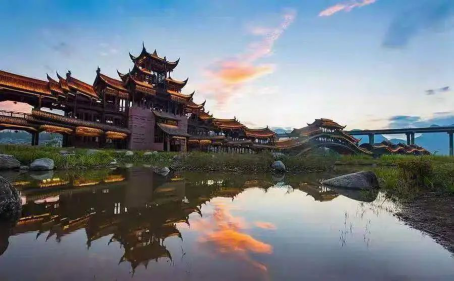 濯水景區位于黔江區東南部,地處烏江第一大支流——阿蓬江畔,為阿蓬江濕地公園的重要組成部分,面積4.8平方公里,由濯水古鎮、畢茲卡水樂園、“世界第一風雨廊橋”、蒲花河休閑農業體驗園和蒲花暗河組成。